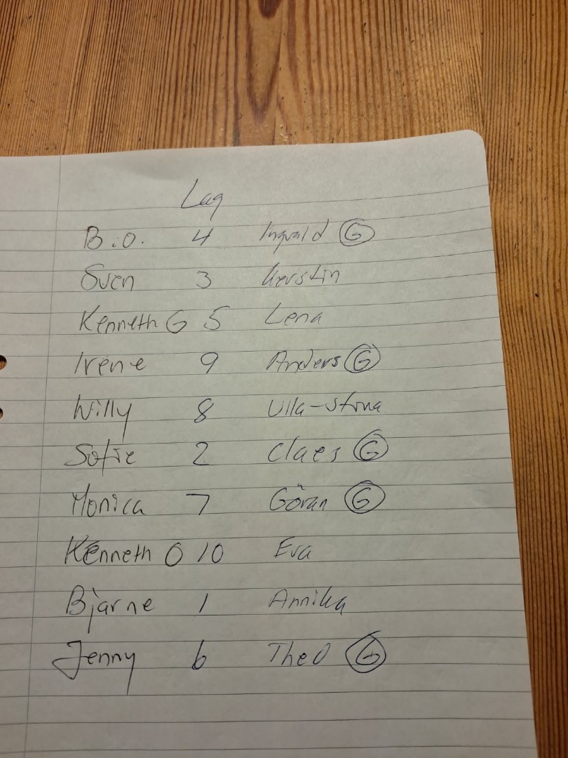 Inom några veckor är det flera olika bowlstävlingar på Albylen. Redan denna helg, lördagen den 15 november är det den första, KM för 2-or. Lagen ses på bilden nedan samt även spelschema. Inrullningen startar upp kl 8 och första matchen är kl 9. 1-an och 2-an går vidare till slutspel. Beräknad starttid för semifinal är 13.45 och beräknad starttid för finalen är kl 14.45. Mat och fika ingår i tävlingsavgiften.